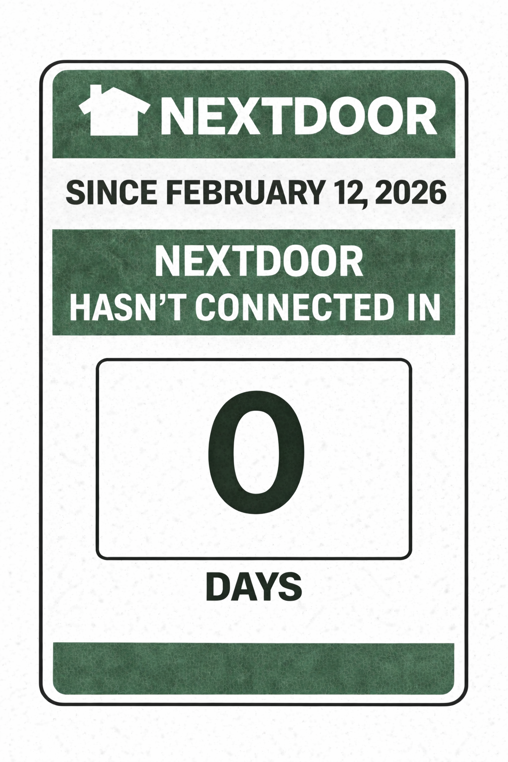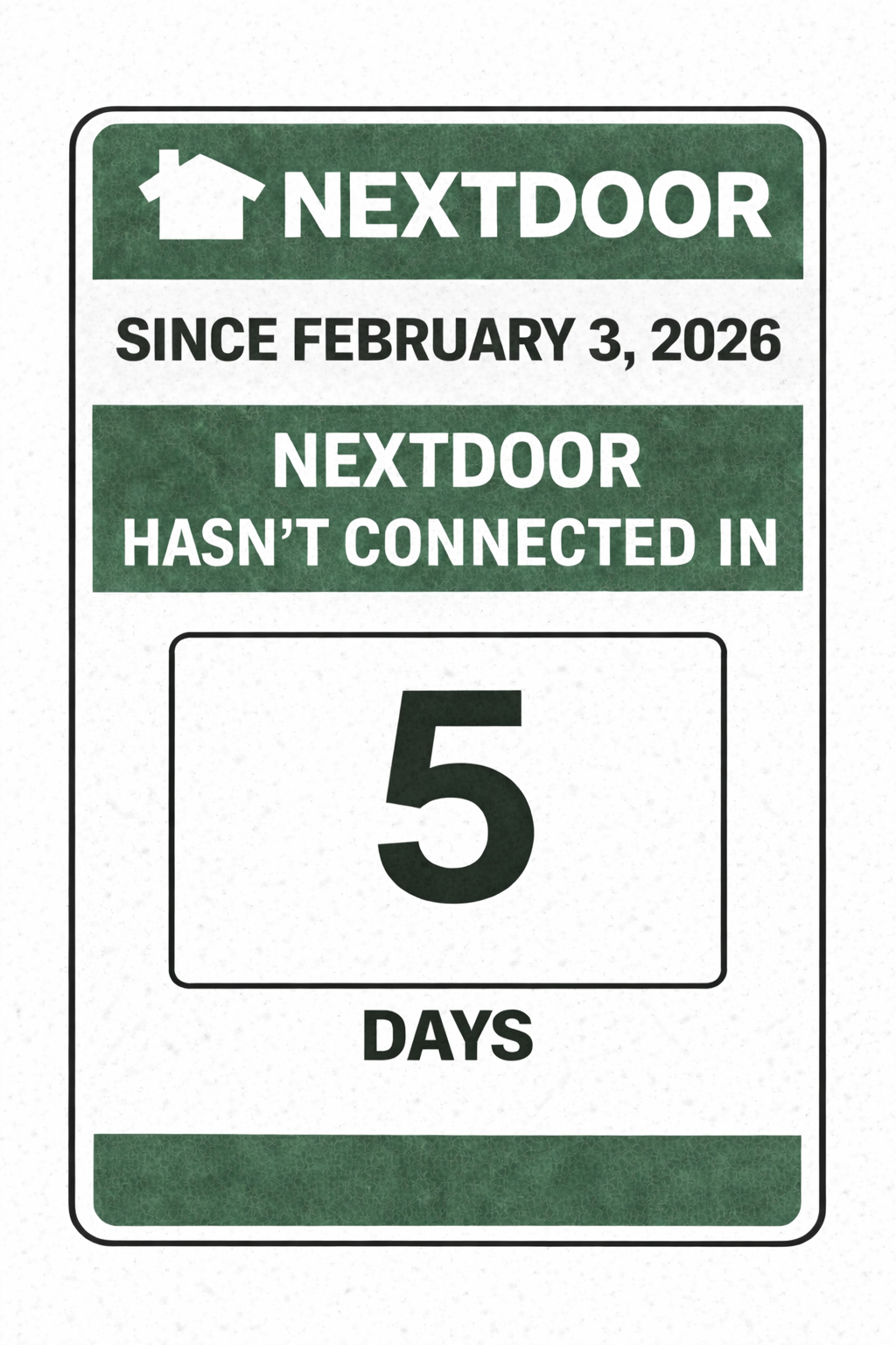 #Nextdoor #EssentialNeighborhoodNetwork #SuperBowlSunday #LeadershipByAbsence #EarlyWeekendCulture #NeighborhoodButMakeItSilent #CorporateHideAndSeek #InvestorRelationsIRL #CommunityWithoutTheCommunity #SilenceIsAStatement #OutOfOfficeEnergy #ThisIsFine #BrandingVsReality #ClownCarLeadership #MimeLevelCommunication