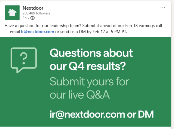 #Nextdoor #Leadership #ShareholderVoice #CorporateStrategy #InvestorRelations #CustomerEngagement #BrandTrust #SuperBowl #MarketSignals