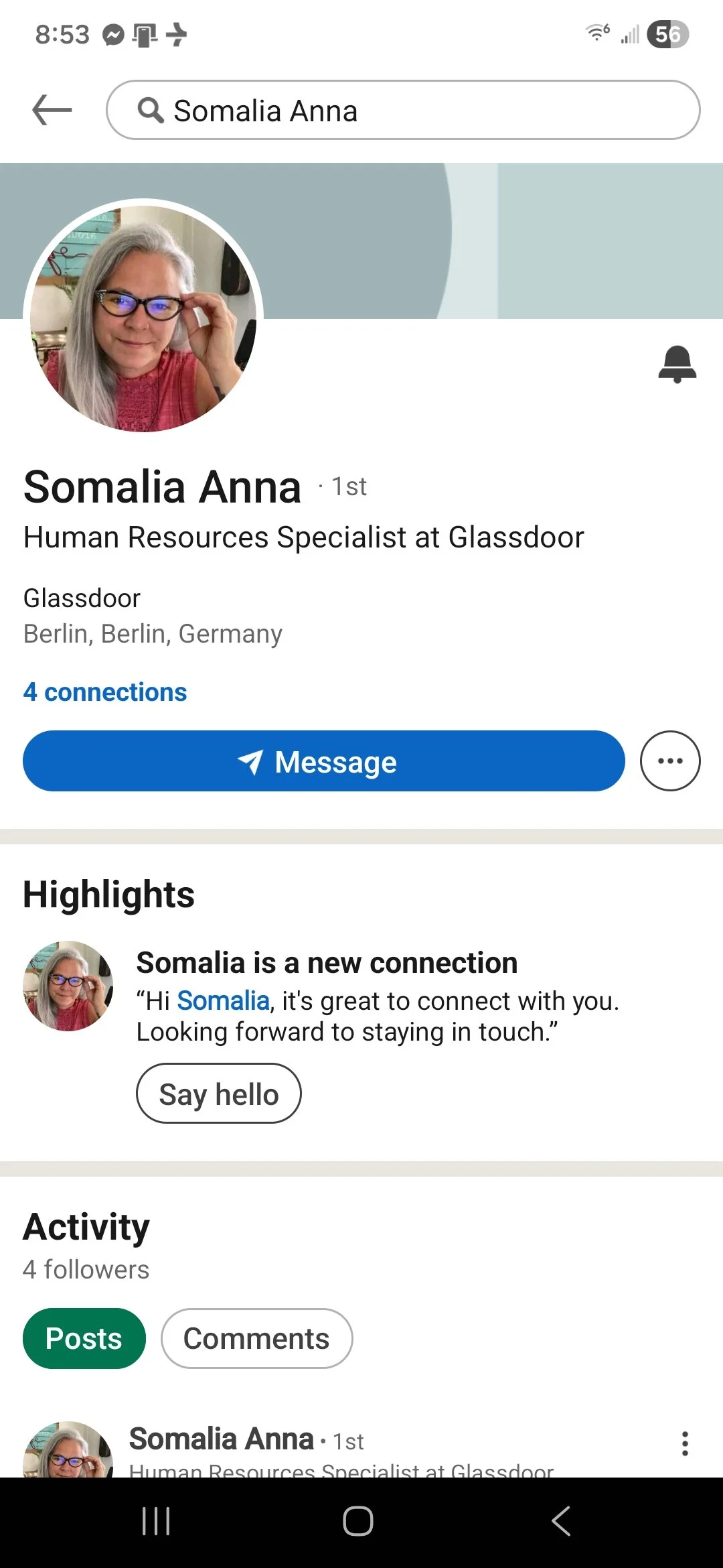 I was contacted by a profile, Somalia Anna, asking about “donations” and “campaign promotion.”
