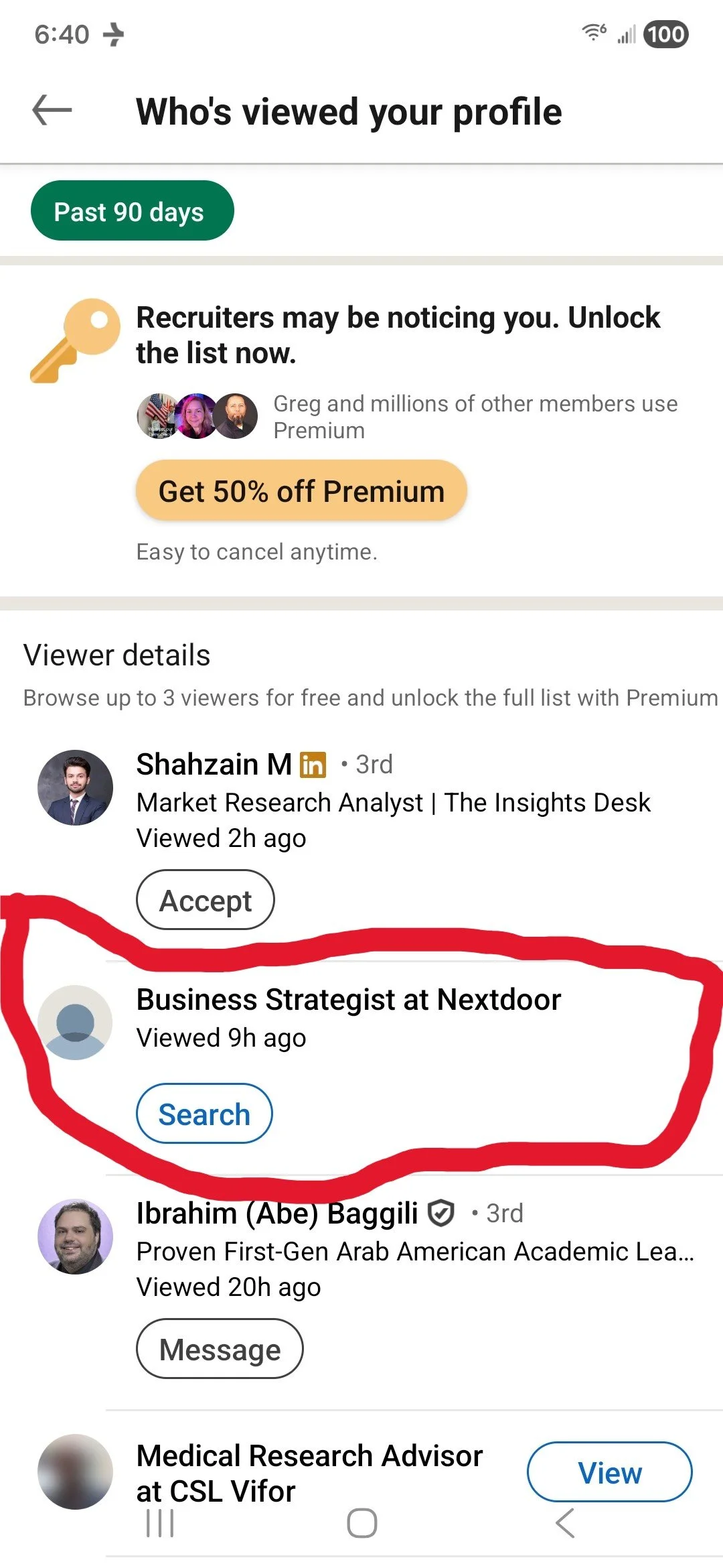 The second: today, April 10, 2026, around 11 am ET, a Nextdoor employee viewed my LinkedIn profile—with their identity concealed. The role is visible. The name is not. Transparency seems selective depending on the direction of the interaction.