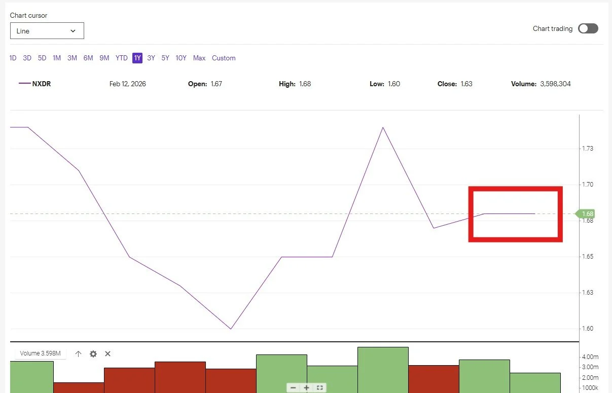 $NXDR closed today at $1.68 per share
